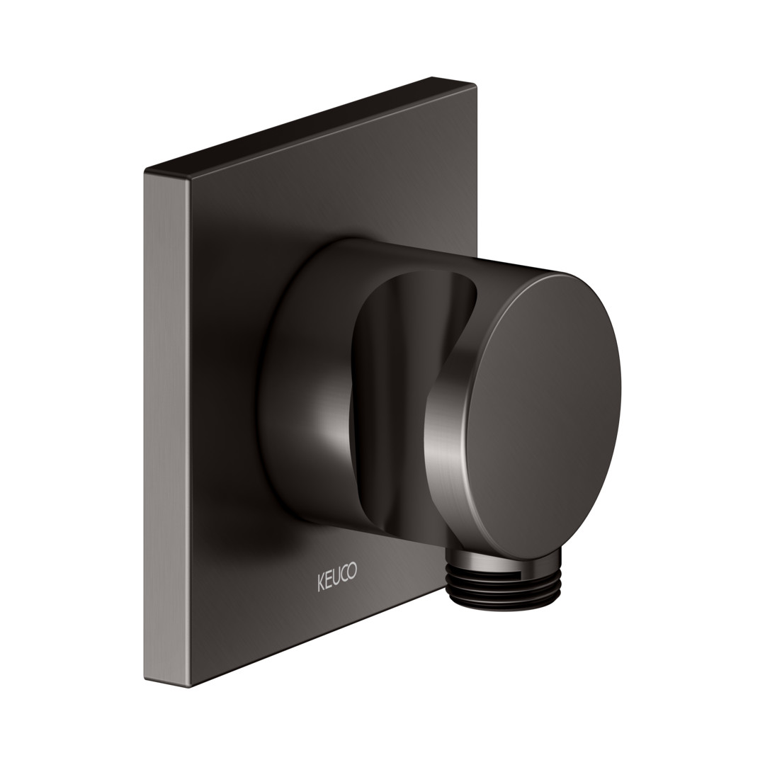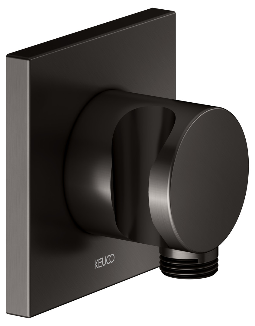 KEUCO Schlauchanschluss IXMO titanschwarz gebürstet, mit Brausehalter, Rosette eckig