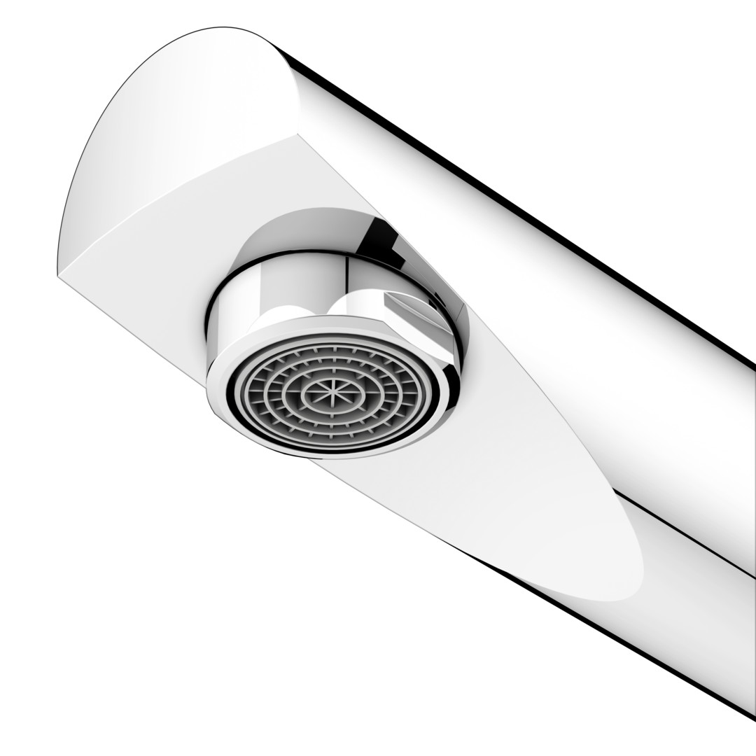 Ausladung 185 mm, Anschlussart S-Anschluss G 1/2, Schlauchanschluss G 1/2 Sicherheitssperre bei 38 °C, Umstellventil mit Absperrung mit keramischen Dichtscheiben, Luftsprudler M 24x1, Durchflussmenge 20 l/min, Durchflussmenge Schlauchanschluss 21 l/ min, eigensicher gegen Rückfließen nach DIN EN 1717, für Durchlauferhitzer geeignet