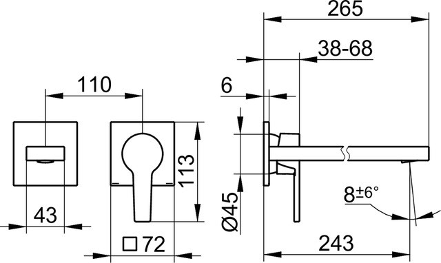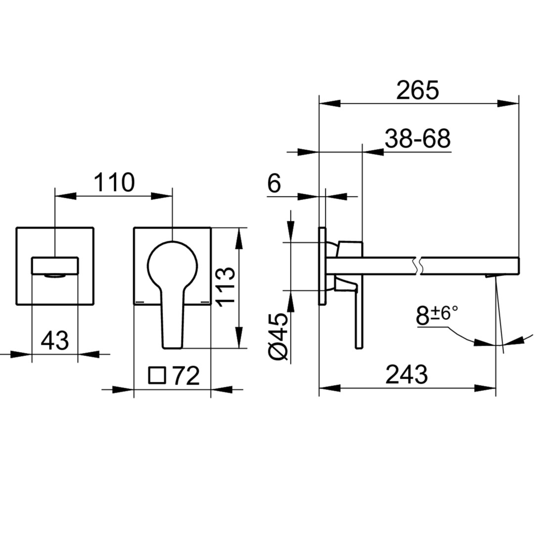 Rosettenform eckig, Anschluss mit Grundkörper G 1/2, Mischwasserkartusche mit keramischen Dichtscheiben, mit Temperaturbegrenzung, Luftsprudler M 24x1, Strahlwinkel +/- 6° verstellbar, Durchflussmenge: begrenzt auf 7,6 l/min, für Durchlauferhitzer geeignet, geräuschgeprüft