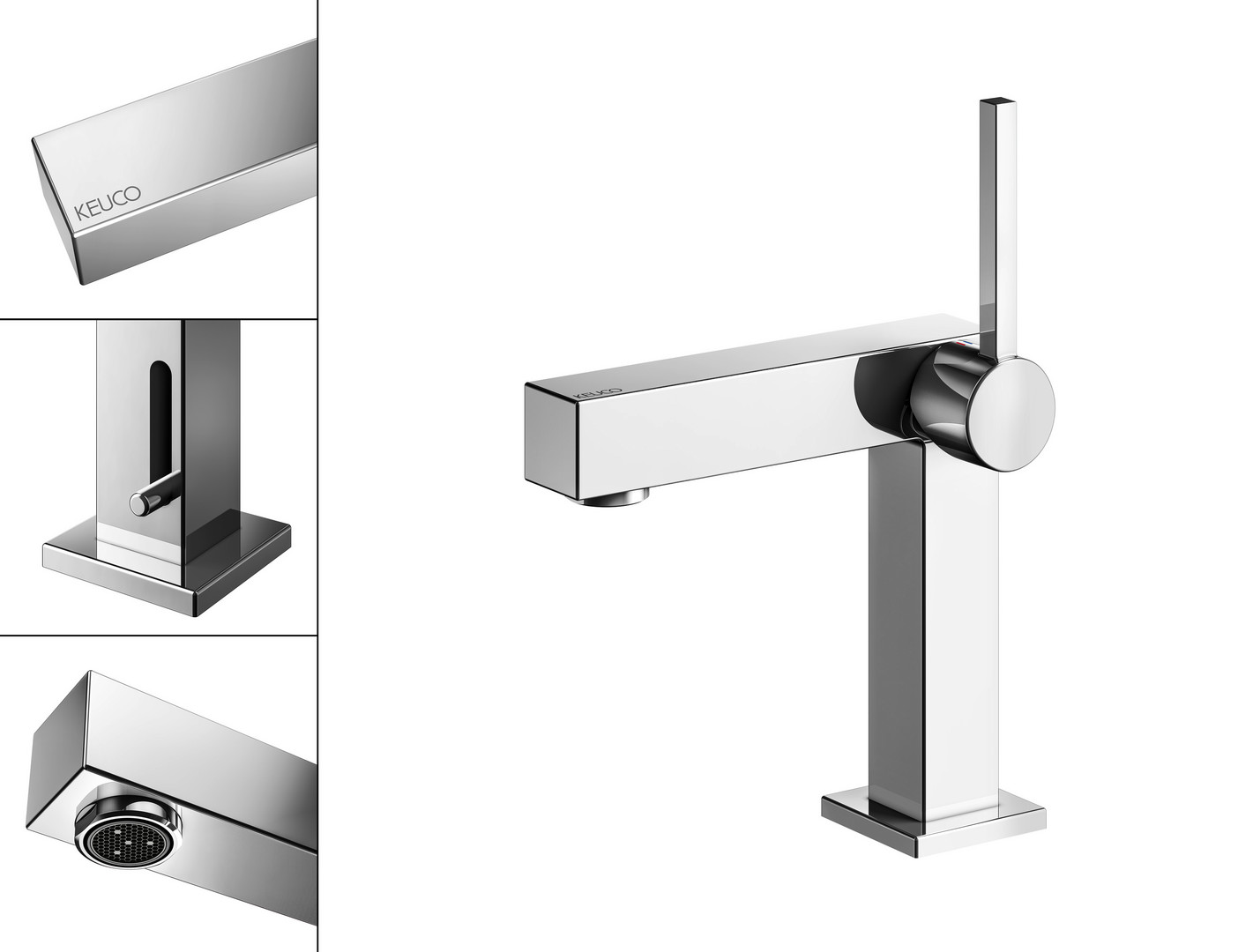 KEUCO Waschtisch-Einhebelmischer 110 Edition 90 Square Ausladung 115mm, mit Ablaufgarnitur, verchromt