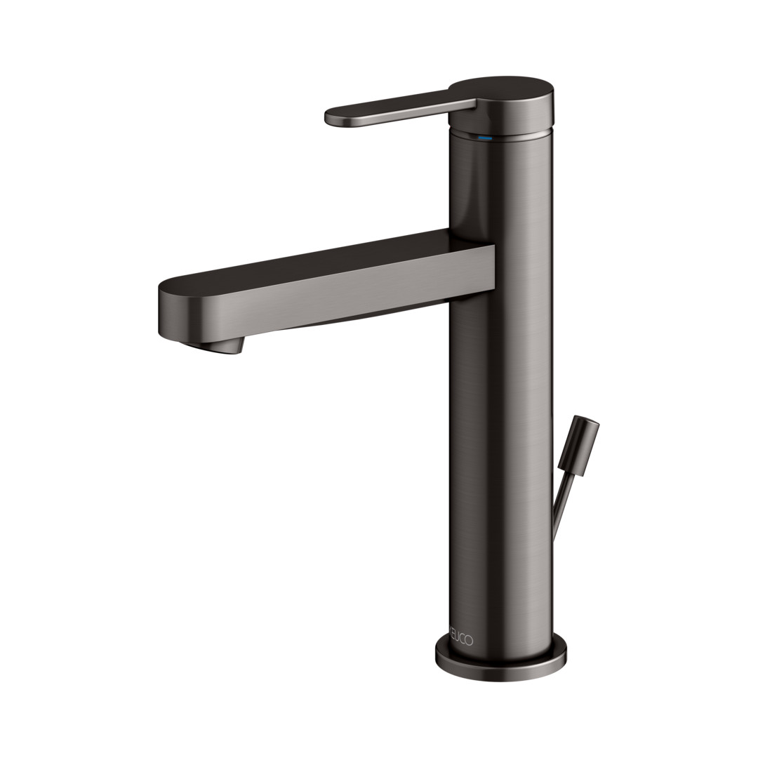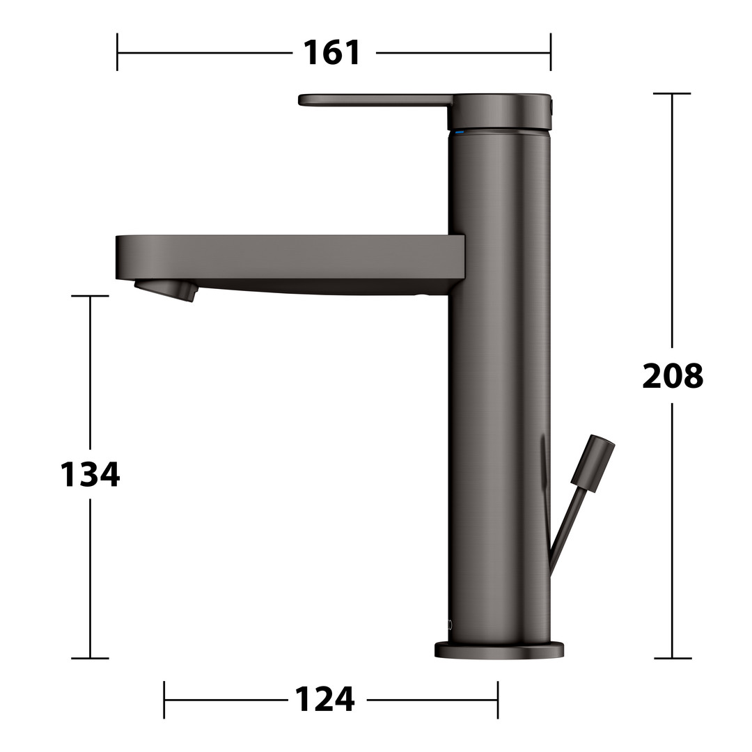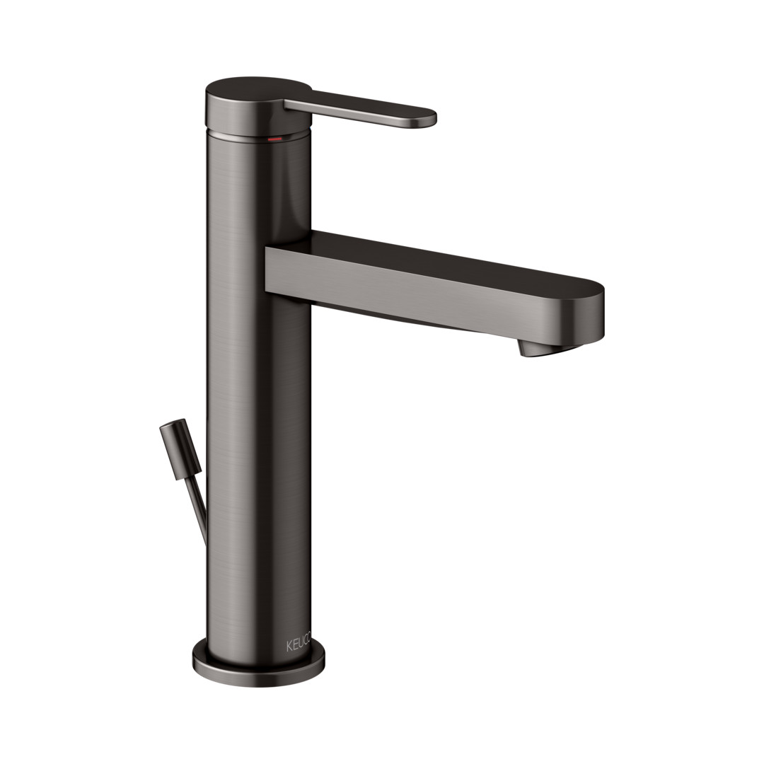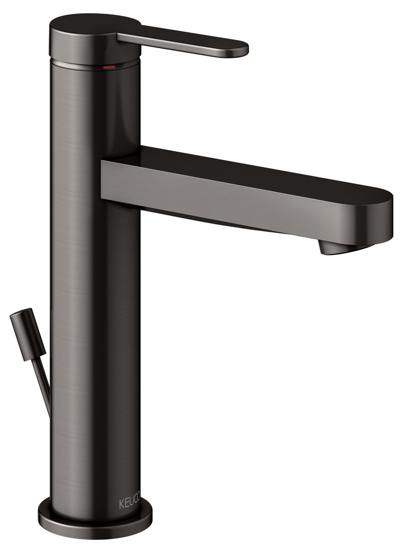 KEUCO Waschtisch-Einhebelmischer 130 IXMO Flat Ausladung 124mm, mit Ablaufgarnitur, titanschwarz gebürstet