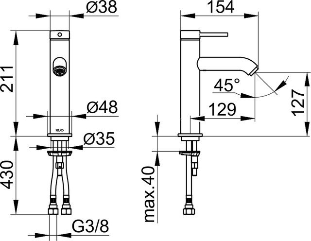 Auslaufhöhe 127 mm, Rosettenform rund/eckig, Einlochmontage mit Schnell-Montage-System, Anschlussart Anschlussschläuche G 3/8, Mischwasserkartusche mit keramischen Dichtscheiben, Luftsprudler M 20x1, Durchflussmenge begrenzt auf 7 l/min, für Durchlauferhitzer geeignet, geräuschgeprüft