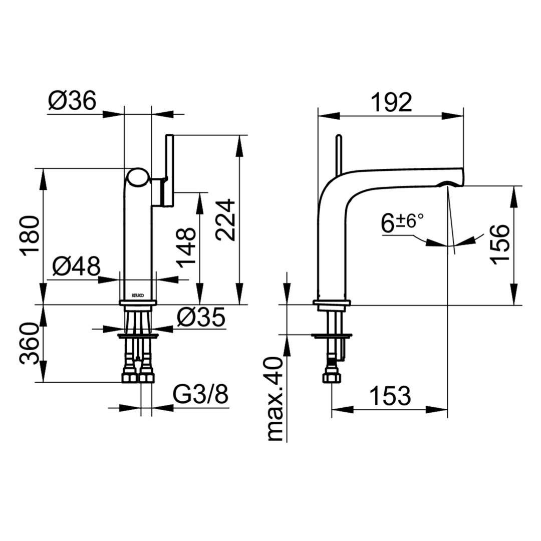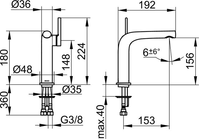 KEUCO Waschtisch-Einhebelmischer 150 Edition 400 Ausladung 153mm, ohne Ablaufgarnitur, titanschwarz gebürstet