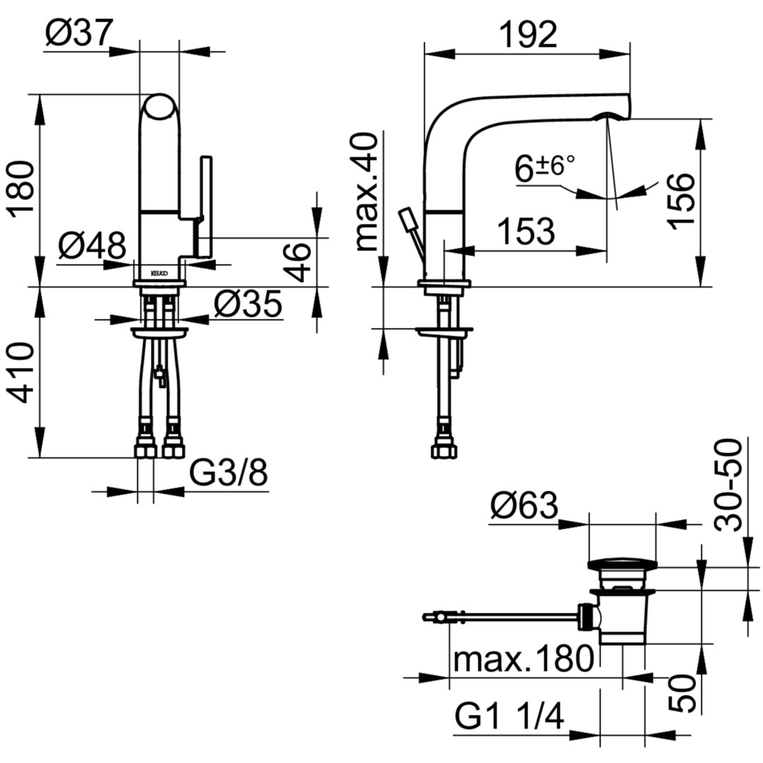 KEUCO Waschtisch-Einhebelmischer 150 Edition 400 Ausladung 153mm, schwenkbar, mit Ablaufgarnitur, edelstahl-finish
