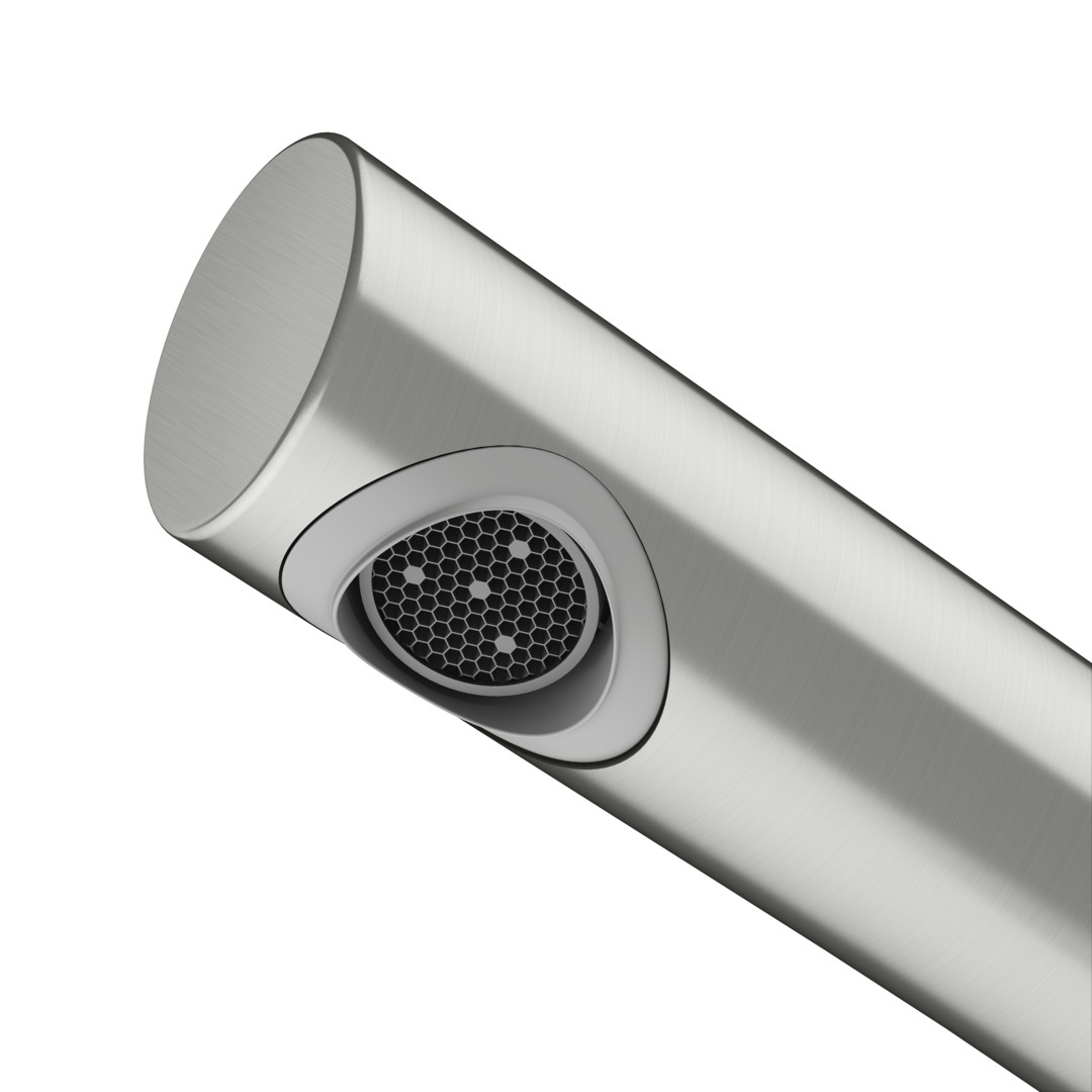 Auslaufhöhe 156 mm, Schwenkwinkel +/- 45°, Einloch-Montage mit Schnell-Montage-System, Anschlussart Anschlussschläuche G 3/8, Mischwasserkartusche mit keramischen Dichtscheiben, Luftsprudler M24x1, Strahlwinkel +/- 6° verstellbar, Durchflussmenge begrenzt auf 7,6 l/min, für Durchlauferhitzer geeignet, geräuschgeprüft
