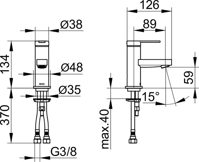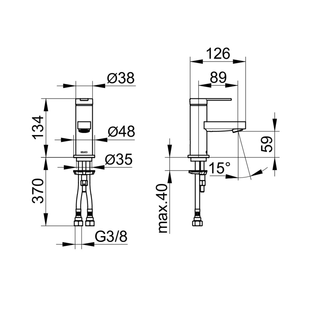 Auslaufhöhe 59 mm, Rosettenform rund/eckig, Einlochmontage mit Schnell-Montage-System, Anschlussart Anschlussschläuche G 3/8, Mischwasserkartusche mit keramischen Dichtscheiben, Luftsprudler M 24x1, Strahlwinkel +/- 6° verstellbar, Durchflussmenge begrenzt auf 7,6 l/min, für Durchlauferhitzer geeignet, geräuschgeprüft