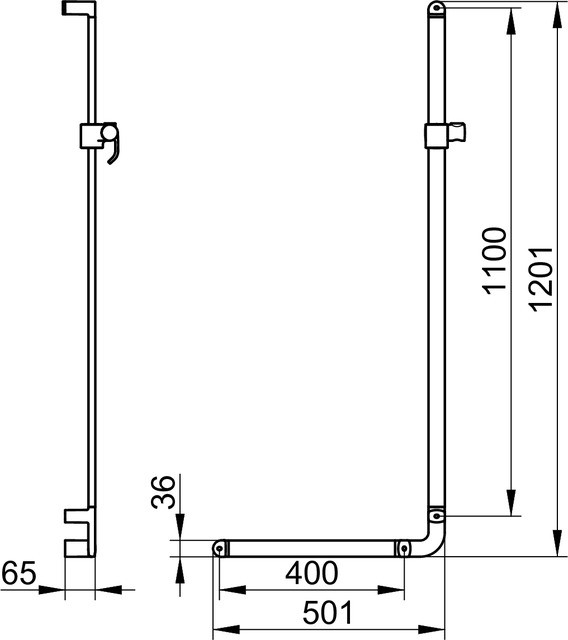 Höhe 1201 mm, Breite 501 mm, Brauseschieber für Schläuche mit konischer Mutter, Neigungswinkel verstellbar, mit Fliesenausgleichsscheibe (5 mm), Belastbarkeit 115 kg