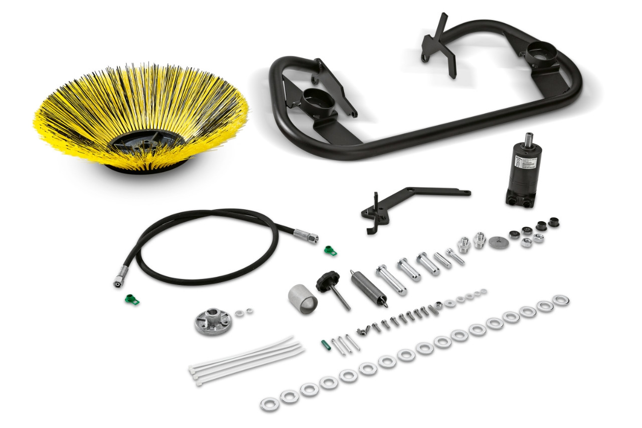 Komplett, inklusive Standard Seitenbesen zur Erhöhung der Flächenleistung.