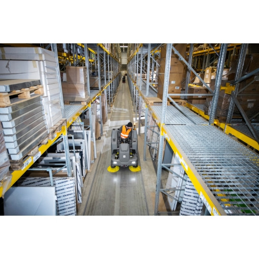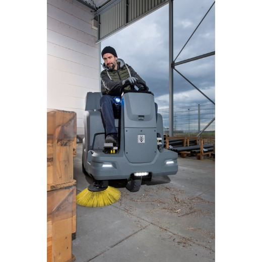 Anbausatz Arbeitslicht für die Aufsitzkehrmaschine KM 100/120 R zur Ausleuchtung der Arbeitsfläche. Ideal in schlecht ausgeleuchteten Bereichen von z. B. Tiefgaragen oder Lagerhallen.