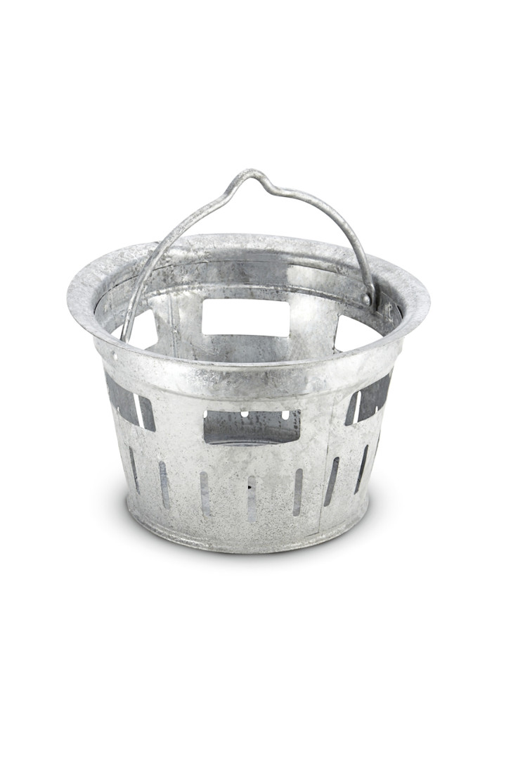 Eimer aus verzinktem Stahl dient zum Auffangen von Grobschmutz und zur Befestigung des Absaugschlauchs im Außenbereich.