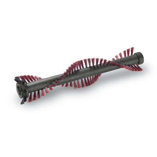 Bürstenwalze mit einer Mischbeborstung von 50 % PA in rot und 50 % Naturborsten.