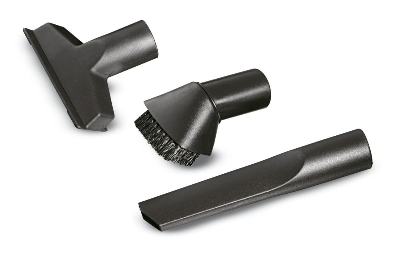 Düsenset bestehend aus Fugendüse, Polsterdüse und Saugpinsel. Das Düsenset eignet sich für alle Kärcher Trockensauger und Nass-/Trockensauger in Nennweite DN 35.