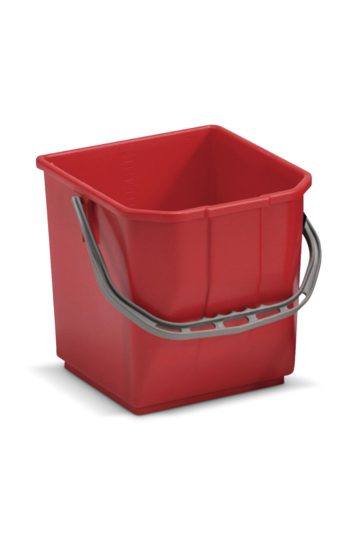 Umweltfreundlicher, roter Eimer aus Polypropylen – davon 50 % recyceltes Material. Der Putzeimer mit Tragegriff bietet 25 l Fassungsvermögen.