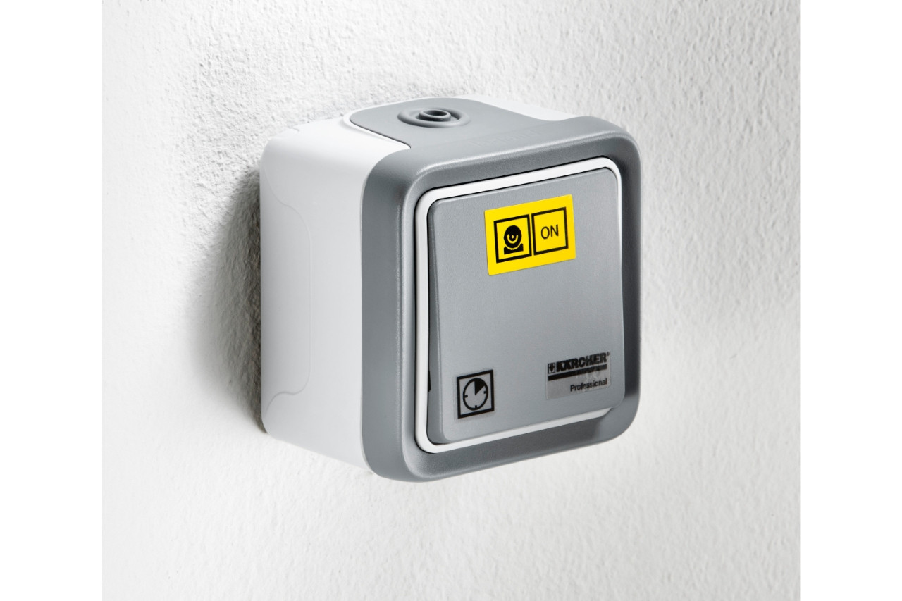 Einfachfernbedienung zur Herstellung der Betriebsbereitschaft bei Stationär-Geräten. Mit Wipptaster, ISO-Gehäuse zur Wandmontage und Befestigungsmaterial.