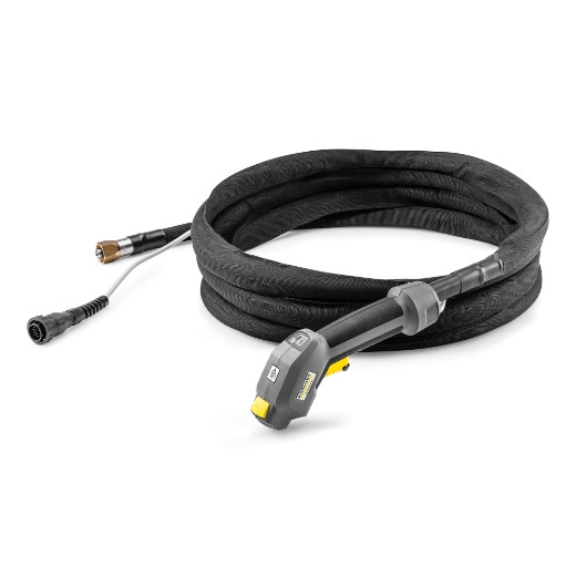 Speziell konzipiert zum sicheren und komfortablen Einsatz mit Trockeneis-Reinigungssystemen von Kärcher: Die kompakte und ergonomische Strahlpistole mit Steuerleitung liegt nicht nur hervorragend in der Hand, sie verfügt auch über ein Verriegelungssystem des Abzughebels, das versehentliches Starten wirkungsvoll verhindert. Das Aktivieren des Trockeneises mittels An-/Ausschalter ist zudem besonders anwenderfreundlich und einfach umgesetzt. Zum umfangreichen Set gehören auch ein Düsen-Schnellwechselsystem, eine Düsenbeleuchtung sowie 5 Meter robusten und langlebigen Strahlschlauchs.