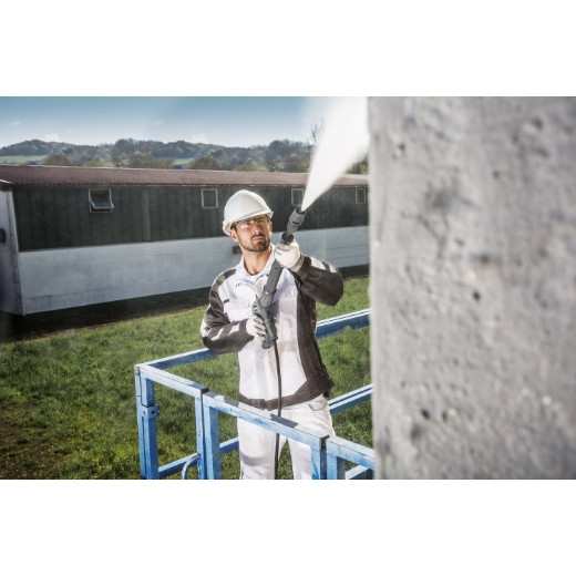 Maler und Fassadenreiniger profitieren in besonderem Maß von den Eigenschaften unseres Kaltwasser-Hochdruckreinigers HD 7/17 M Portable. Ausgerüstet mit einer hochentwickelten 3-Kolben-Axialpumpe liefert er bis zu 170 Bar Arbeitsdruck bei einer maximalen stündlichen Wassermenge von 700 Liter. Das handliche und tragbare Gerät eignet sich für den stehenden und den liegenden Betrieb und ist dabei auf Gummifüßen gelagert, die das Übertragen von Eigenschwingungen während des Betriebs auf das Baugerüst verhindern. Eine automatische Druckentlastung sorgt für hohe Standzeiten der Hochdruckkomponenten, ein robustes Gehäuse schützt Motor und Elektrik zuverlässig vor Spritzwasser. Komfortables Arbeiten ermöglicht die EASY!Force-Hochdruckpistole, welche die Rückstoßkraft des Hochdruckstrahls ausnutzt, um die Haltekraft auf null zu reduzieren. Innovative EASY!Lock-Schnellverschlüsse erlauben, im Vergleich zu herkömmlichen Verbindungen, ein 5-mal schnelleres Handling ohne Einbußen bei Robustheit und Langlebigkeit.