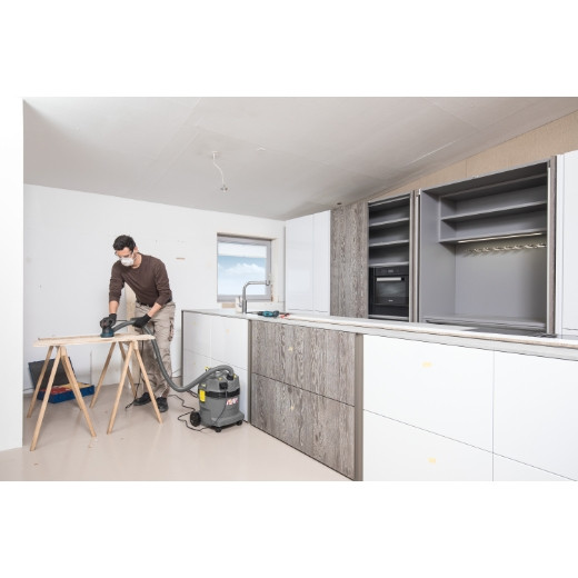 Handwerker werden diesen kleinen Kraftprotz sehr zu schätzen wissen. Unser Nass-/Trockensauger NT 22/1 Ap Te verfügt über eine Gerätesteckdose mit Automatikanlauf für Elektrowerkzeuge, ist sehr leicht und damit jederzeit bequem zu transportieren und überzeugt darüber hinaus mit starker Saugleistung bei leichten bis mittelschweren Reinigungsarbeiten. Ob Staub, grober Schmutz oder Flüssigkeiten: Dank halbautomatischer Filterabreinigung und des feuchtigkeitsunempfindlichem PES-Patronenfilter erledigt er zuverlässig und gründlich seine Arbeit. Dabei ermöglicht der in den Gerätekopf integrierte Saugschlauchanschluss die maximale Ausnutzung des Behältervolumens. Damit ist der einfach zu bedienende und vielseitige NT 22/1 Ap Te der ideale Begleiter bei Installations- und Renovierungsarbeiten, bei der Gebäudereinigung und vielen weiteren gewerblichen Anwendungen.