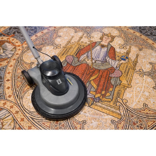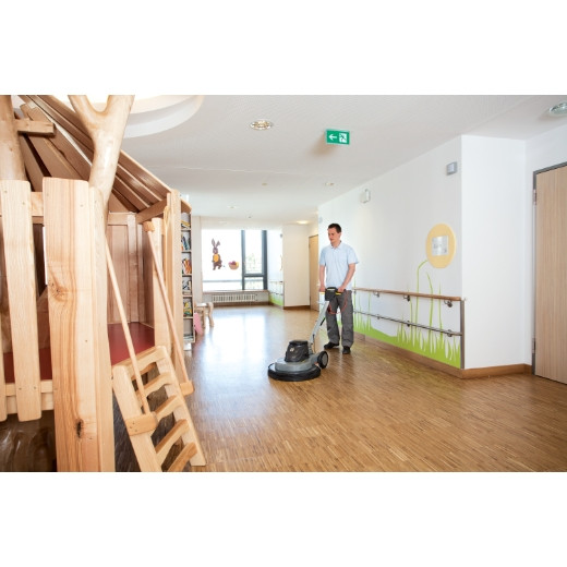 Die Poliermaschine BDP 50/1500 C besticht durch kompakte Abmessungen und einfache Manövrierbarkeit dank zentralem Entlastungsrad. Mit einer Drehzahl von 1500 U/min liefert das Gerät glänzende Polierergebnisse. Einfache Bedienelemente gewährleisten eine intuitive Handhabung. Die umlaufende Schürze verhindert Staubverwirbelungen. Der Staub wird durch eine Passivabsaugung in einem ca. 1 Liter großen, wiederverwendbaren Stofffilterbeutel gesammelt. Die Maschine ist bewegungsneutral und ermöglicht eine konsequente Geradeausfahrt – für maximale Produktivität. Der verstellbare Griff garantiert eine komfortable Arbeitshöhe und kann zur platzsparenden Aufbewahrung hochgeklappt werden. Der Abzugshebel verhindert einen unbeabsichtigten Maschinenstart und stoppt das Gerät sobald der Hebel losgelassen wird. Der schwimmende Padtreibteller stellt sich automatisch auf den Untergrund ein. Er ist federentlastet und stellt den optimalen Anpressdruck sicher. Der optional erhältliche Spray-Cleaning-Anbausatz sorgt dafür, dass Reinigungsmittel nur dort aufgesprüht wird, wo es gebraucht wird.