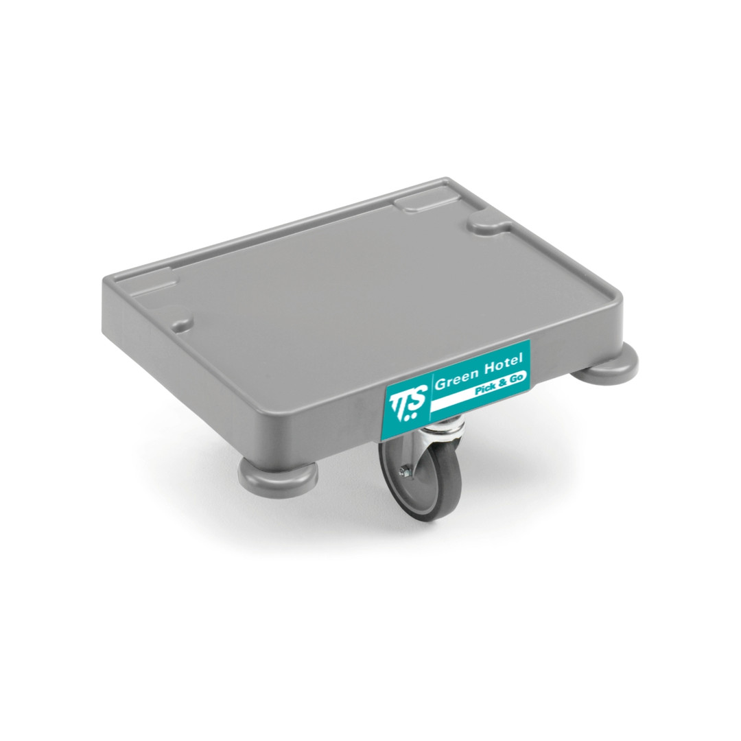Sackhalterplatte aus Polypropylen mit Rad (25 mm). Maße: 53 × 28 × 7 cm.