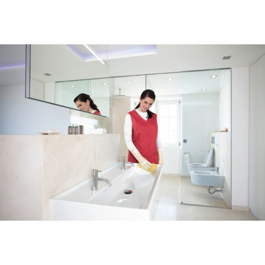 Besonders materialschonend und gleichzeitig extra reinigungsstark: der stark schäumende, hochnetzende SanitPro Unterhaltsreiniger Allsan von Kärcher. Das sehr effiziente Hochkonzentrat bietet dazu ein breites Anwendungsspektrum. So eignet es sich in Sanitärbereichen hervorragend zur manuellen Reinigung aller Oberflächen aus Keramik, Glas, Edelstahl und Kunststoff, aber auch für kalkhaltiges Weichgestein wie Marmor sowie für hydrophobe Flächen wie PUR-beschichtete Böden. Dabei beseitigt Allsan primär Seifenrückstände, Fette und organische Verschmutzungen, entfernt aber aber leichte Rückstände von Kalk, Kalkseife und Urinstein – streifenfrei und mit lang anhaltendem Duft. Der Reiniger kann ganz nach Bedarf sowohl zum Nasswischen mit der Eimermethode und Vorimprägnierung als auch zum Feuchtwischen mit der Sprüh-/Schaummethode verwendet werden.