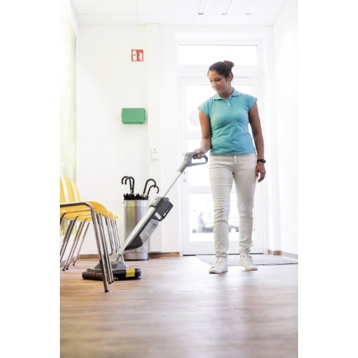 Unsere neue, sehr kompakte Akku-Scheuersaugmaschine BR 30/1 C Bp Pack ist die ideale Wahl zur hygienischen Bodenreinigung auf allen Hartbodenarten, einschließlich Fliesen- und Sicherheitsbodenbelägen. Dabei überzeugt sie dank Mikrofaser-Walzentechnik im Vergleich zur manuellen Bodenreinigung mit einem um bis zu 20 Prozent besseren Reinigungsergebnis sowie bis zu 60 Prozent kürzeren Trocknungszeiten. Angetrieben von einem leistungsstarken 18-Volt-Lithium-Ionen-Akku aus dem Kärcher Battery Universe ist die BR 30/1 C Bp Pack insbesondere zur Unterhaltsreinigung auf kleineren Flächen in Büros, dem Einzelhandel, in Praxen und Kanzleien, in Hotellerie und Gastronomie oder auch in Kantinen, Schulen und Krankenhäusern geeignet. Darüber hinaus ist sie in Verbindung mit dem Kärcher Desinfektionsreiniger RM 732 auch zur Desinfektion von Bodenflächen einsetzbar.