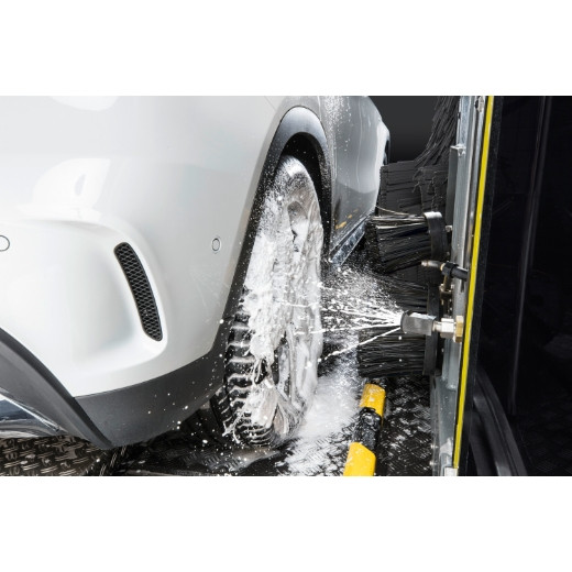 Entwickelt zum Einsatz in Fahrzeugwaschanlagen wie CW 5 Klean!Star iQ und an SB-Waschplätzen begeistert der hochkonzentrierte, alkalische Felgenreiniger VehiclePro Klear!Rim Foam RM 802 mit höchster Effektivität bei der Beseitigung hartnäckigster Verschmutzungen von Pkw-Felgen aus Leichtmetall oder Stahl. Der Reiniger aus der Serie Klear!Line von Kärcher verfügt dazu über stark schäumende Eigenschaften – die erhöhte Kontaktzeit unterstützt ideal die Entfernung von Bremsstaub, Reifenabrieb, Kalk und Rückständen von Streusalz, auch bei kontaktloser Reinigung. Dabei ist er besonders materialschonend und greift weder die Felgen selbst noch unbeschichtete Betonböden oder Radmulden aus Stahl an. Darüber hinaus überzeugt der Reinigungsschaum mit einer Ergiebigkeit von bis zu 500 Fahrzeugen pro Liter und ist zu über 90 Prozent biologisch abbaubar – Tenside nach EEC 648/2004.