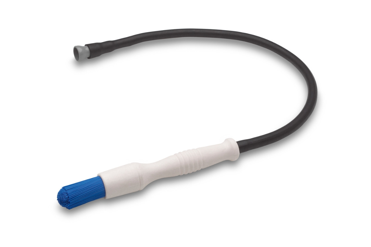 Der reinigungsmitteldurchflutete Pinsel dient zur Schmutzentfernung von Teilen.