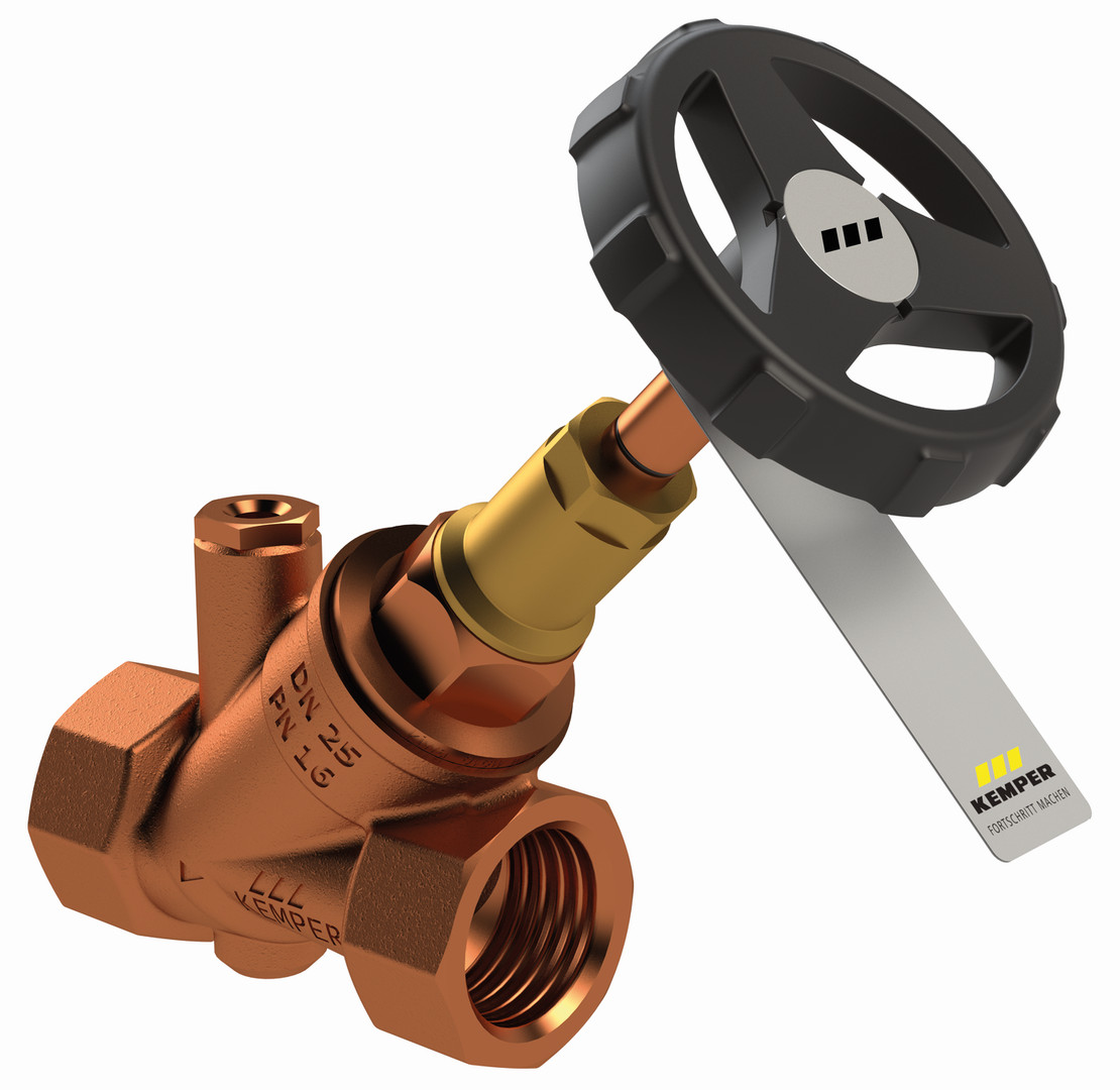 Kemper Freistrom-Absperrventil Weser DN 32, Rp 1 1/4, PN 16, Rotguss, mit Entleerstopfen