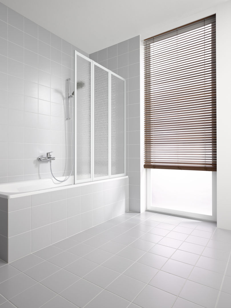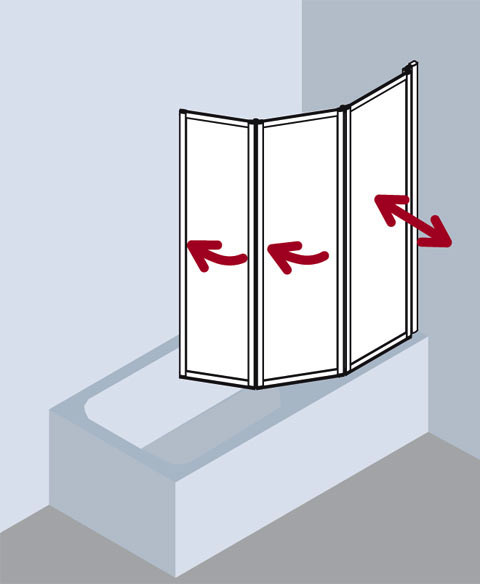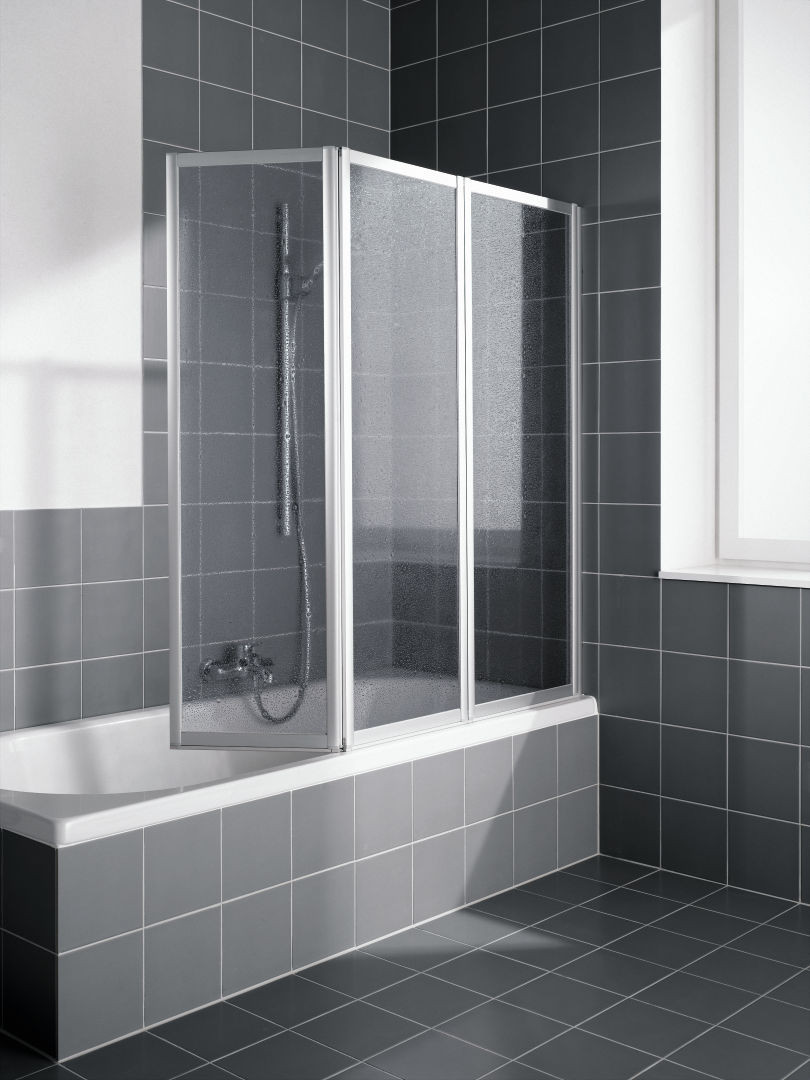 Kermi Faltwand Vario 2000 3-flügelig auf Badewanne 101,1-102,7x140cm, silber matt, ESG SR Opaco Clean