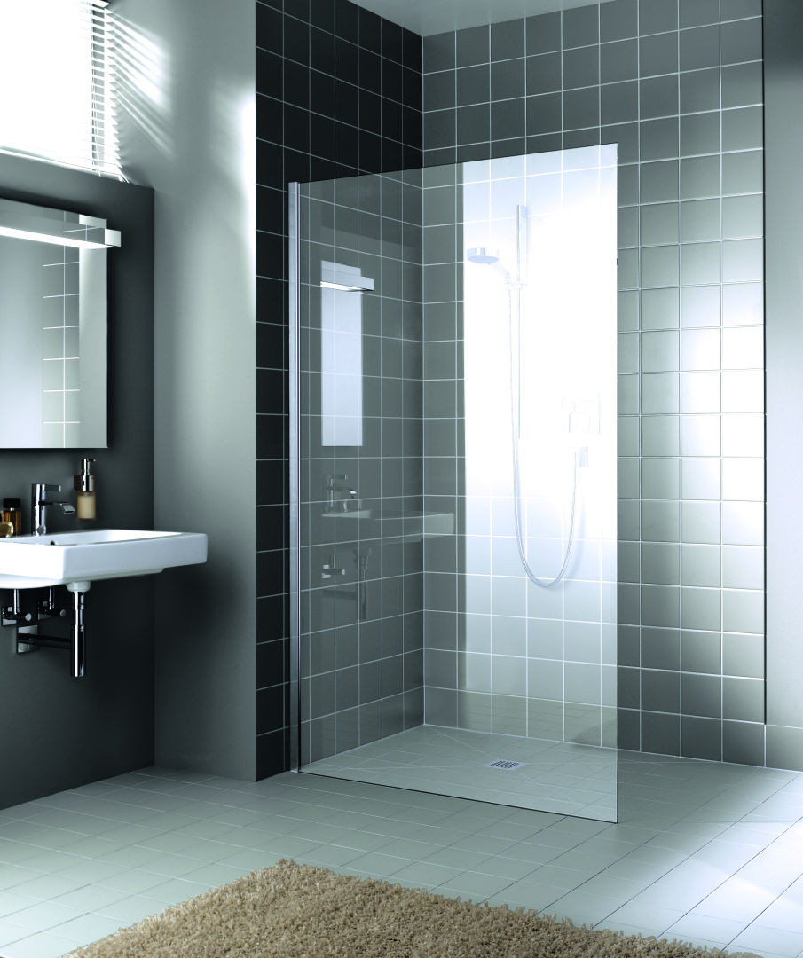 teilgerahmt, mit Wandbefestigung, ohne Stabilisierung, optional mit Walk-In XC Stabilisierung (innen), Verglasung 10 mm Einscheiben-Sicherheitsglas nach EN 12150, optional mit Pflegeleicht-Beschichtung, Profil aus eloxiertem Aluminium, Verstellmöglichkeit im Wandprofil 10 mm, mit Befestigungsmaterial, geprüft nach DIN EN 14428, Schräge unter der Walk-In WALL max. 5 mm, anderenfalls Montage nicht möglich, rechts und links verwendbar