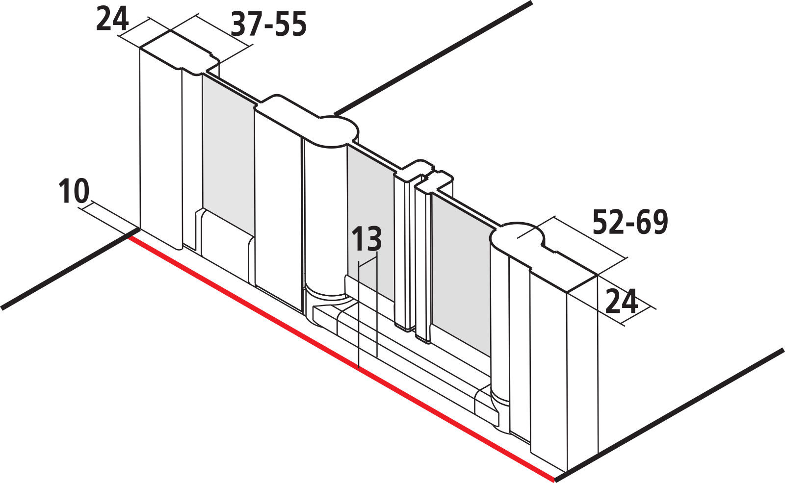 | Einbaubreite Tür für die Montage mit Seitenwand | 1090 - 1125 mm |