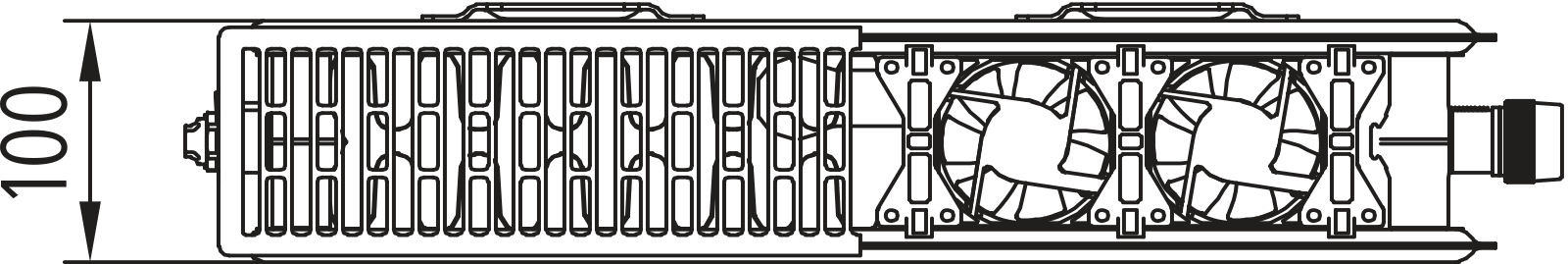 mit Axialventilatoren und Regeleinheit, Verkleidung, serieller Durchströmung, Nabenabstand BH -54 mm, Anschlüsse 2x G 3/4" Außengewinde unten mittig, Vorlauf immer links, 2x G 3/4" Außengewinde unten seitlich, Volauf immer innen, 4x G 1/2" Innengewinde seitlich, Standard Ventil recht (Ventil links lieferbar), alle Anschlüsse werkseitig dicht verschlossen, Betriebsbedingungen max. Vorlauftemperatur 65 °C, max. Betriebsdruck 10 bar (Prüfdruck 13 bar), elektrische Schutzklasse 2/Schutzart IP 20, min. Auslegung Heizen 35/30/20, elektrische Leistungsaufnahme pro Lüfter 0,47 W, Lieferumfang mit fertiginstallierten Axiallüftern, Temperaturfühler, vollautomatischer Regeleinheit, Anschlusskabel 1,4 m, oberer Abdeckung und seitlichen Blenden, Montageset mit Entlüftungsstopfen beigepackt sowie Blindstopfen eingeschraubt, mit voreingestelltem Ventil, Befestigung 4 Laschen an der Rückseite des Heizkörpers (ab Baulänge 1800 mm, 6 Stück), Montageset beigepackt, Lackierung weiß (RAL 9016)
