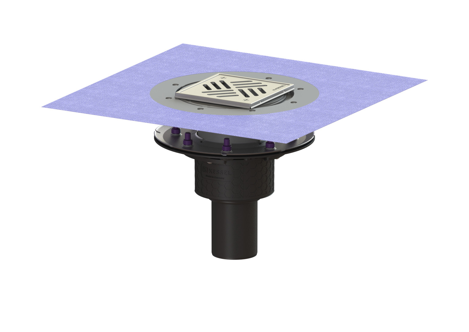 bestehend aus Grundkörper mit Auslauf senkrecht, aus Ecoguss resistant, mit Pressdichtungsflansch, Geruchsverschluss, Auslaufstutzen für SML-Rohranschluss, Sperrwasserhöhe 50 mm, Kernlochbohr-Maß 160 mm, Aufsatzstück für Abdichtung im Verbund aus ABS, mit beiliegender Dichtmanschette, Schlitzrost 138 x 138 mm, Rahmen aus Edelstahl V2A, Klasse K 3, verschraubt
