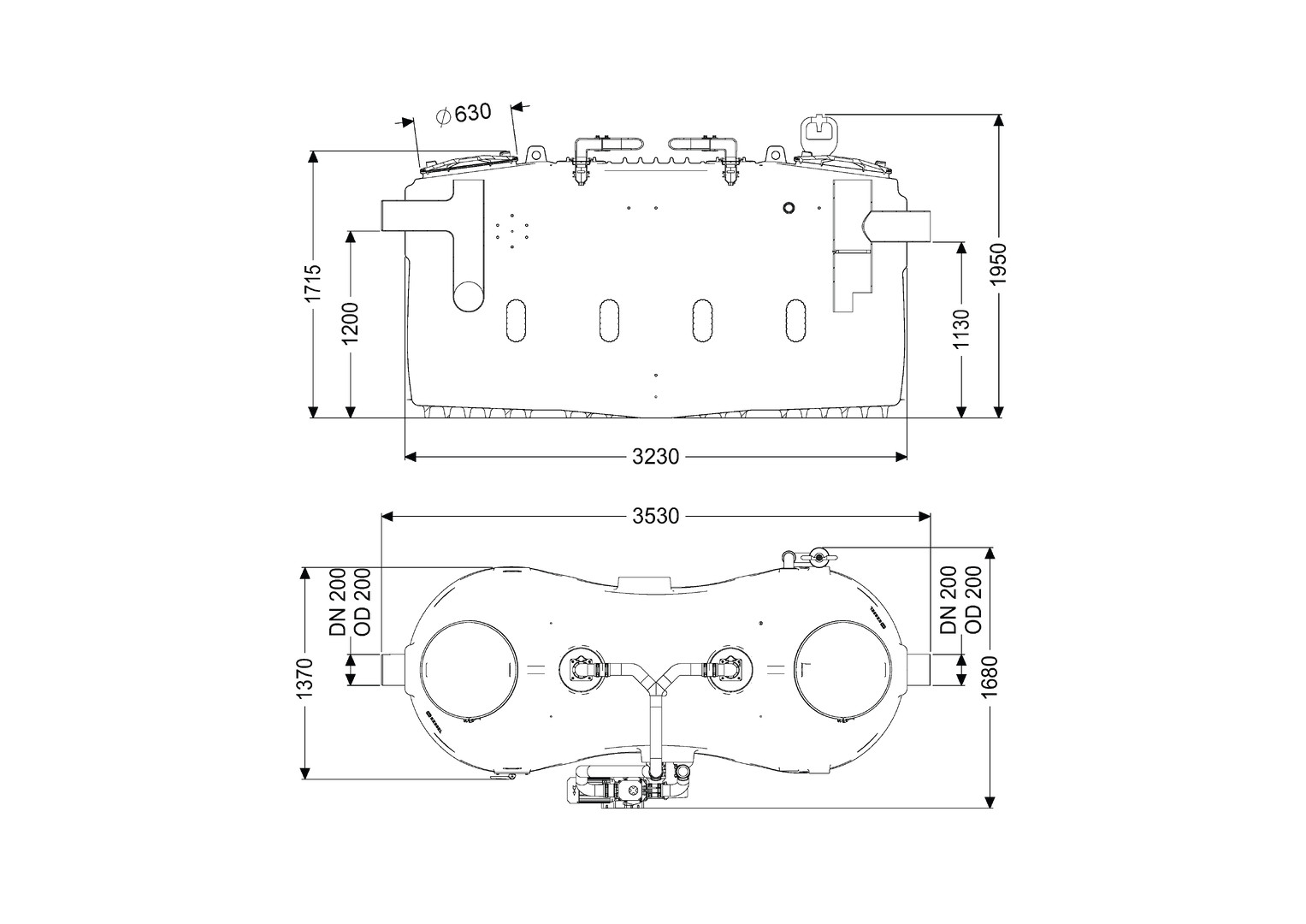| Nenndurchmesser alle Anschlüsse | DN 200 |