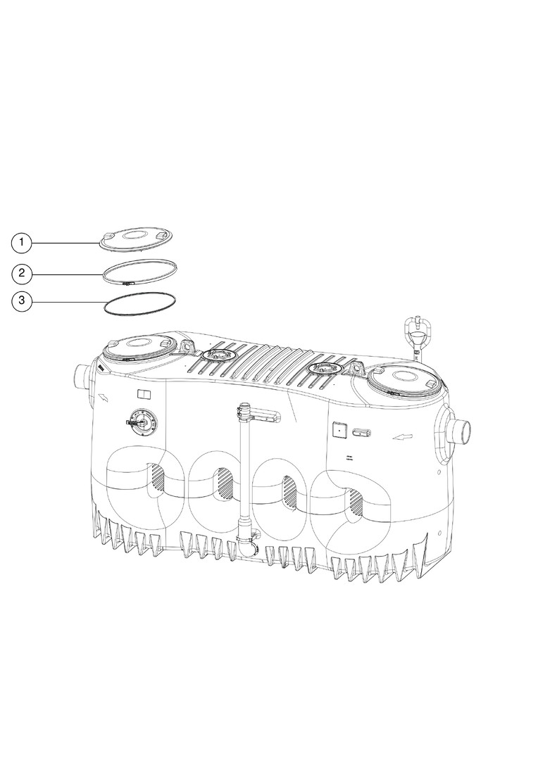 aus PE, Einbau in frostgeschützten Räumen, mit Direktentsorgung, die Fließrichtung kann durch Austauschen des Zu- und Auslaufstutzens geändert werden, Anlage komplett montiert, Zubehör Fülleinrichtung, Probenahmeeinrichtung, Hebeanlage, Schauglas