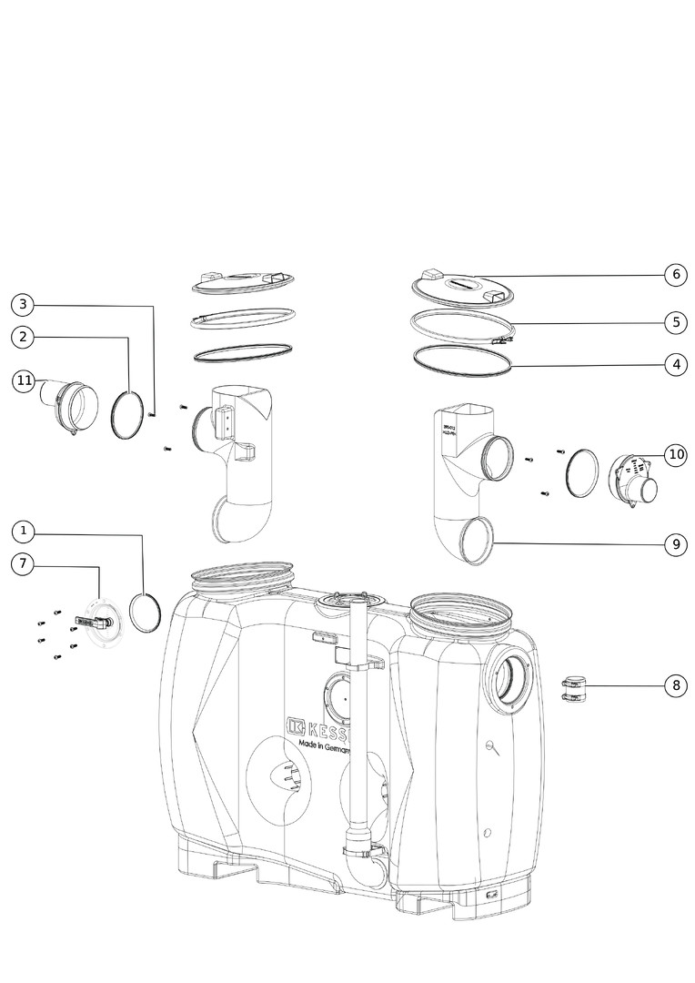 aus PE, Einbau in frostgeschützten Räumen, mit Direktentsorgung, die Fließrichtung kann durch Austauschen des Zu- und Auslaufstutzens geändert werden, Anlage komplett montiert, Zubehör Fülleinrichtung Probenahmeeinrichtung, Hebeanlage