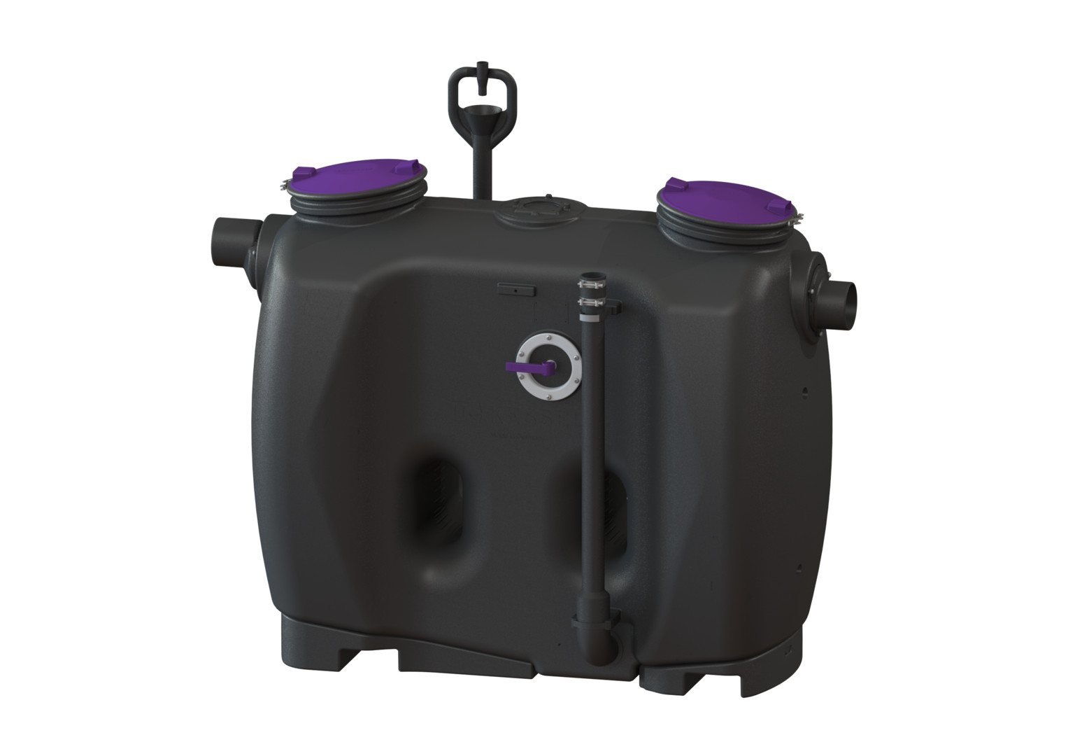 aus PE, Einbau in frostgeschützten Räumen, mit Direktentsorgung, die Fließrichtung kann durch Austauschen des Zu- und Auslaufstutzens geändert werden, Anlage komplett montiert, Zubehör Probenahmeeinrichtung, Hebeanlage