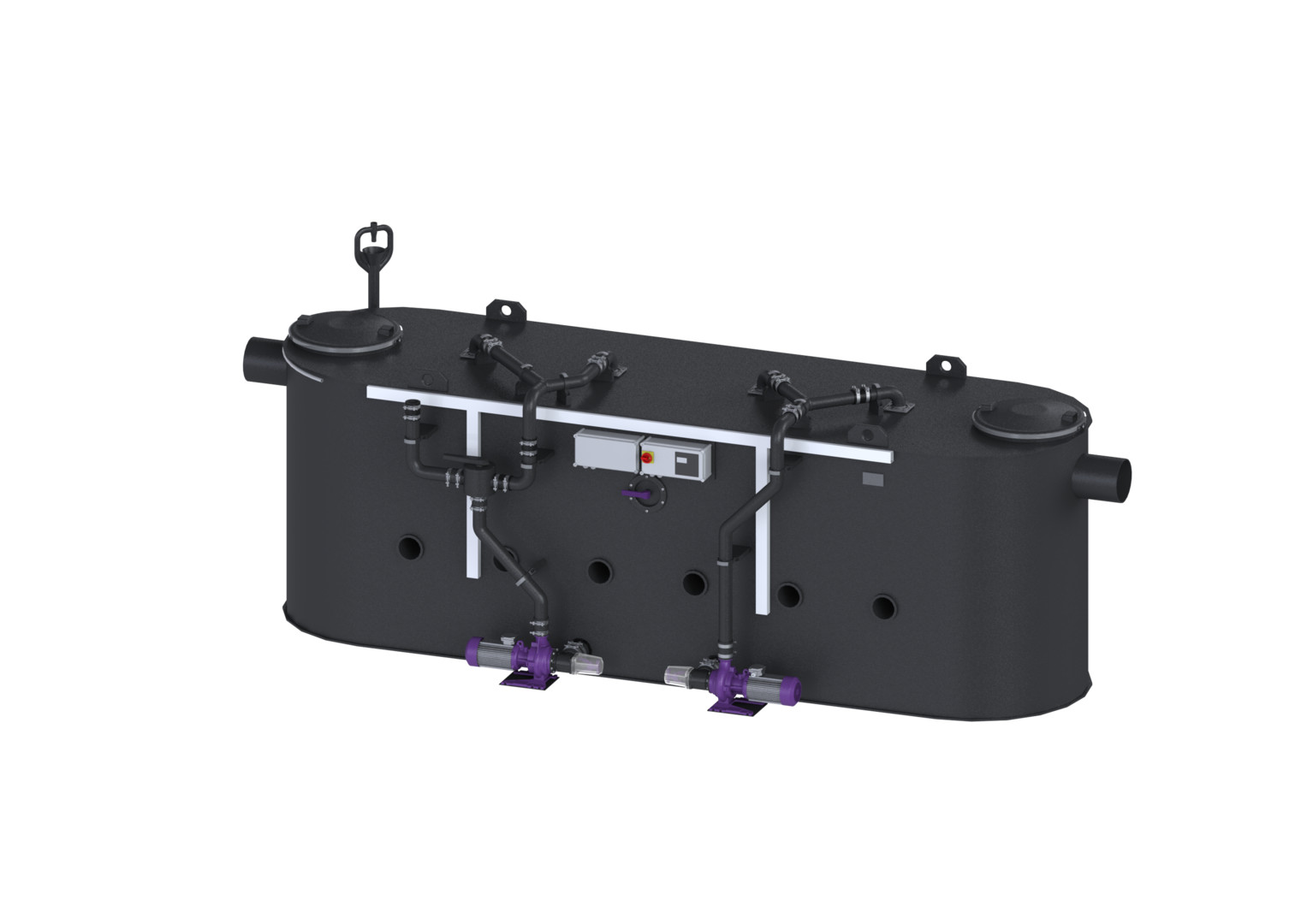 aus PE, Einbau in frostgeschützten Räumen, mit manueller Entsorgungs- und Reinigungseinrichtung, Schredder-Mix-System, Schaltgerät, Schauglas, Fülleinrichtung, Pumpe (ab NS 20 zwei Pumpen), Fließrichtung gem. Kundenangabe, Pumpenleistung 3 kW, Kabellänge für Anbauteile 5 m, Anlage komplett montiert, Zubehör Probenahmeeinrichtung, Hebeanlagen, SonicControl Schichtdicken-Messgerät für Fette