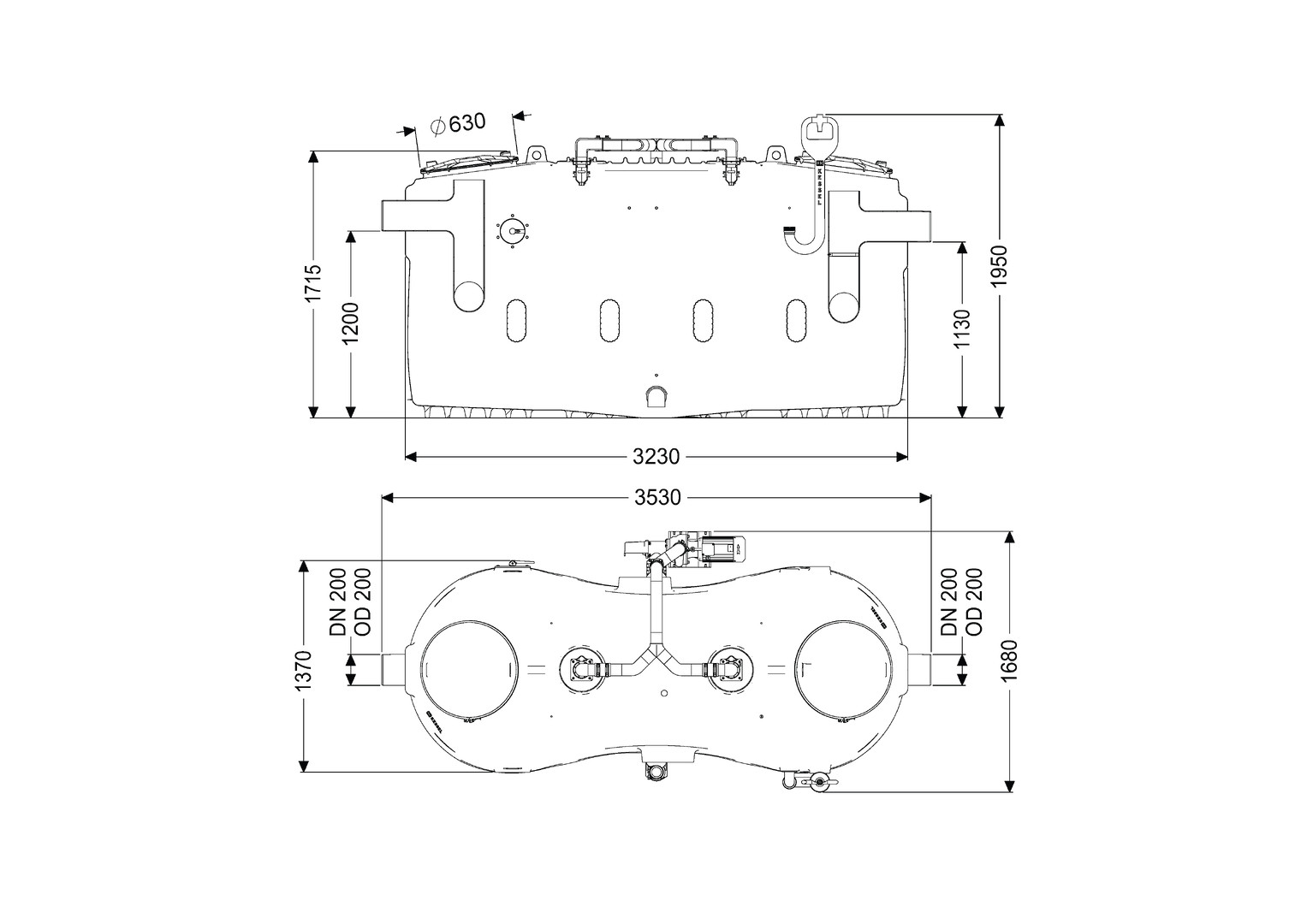 Rohraußendurchmesser alle Anschlüsse 200 mm