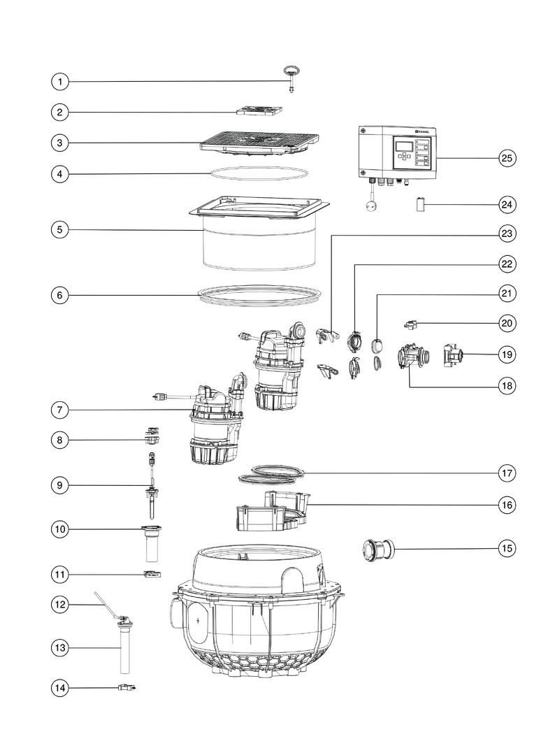Kessel Hebeanlage Aqualift S Compact Duo Tronic GTF 500-S1, Abdeckung befliesbar, 2 Pumpen, 230 V