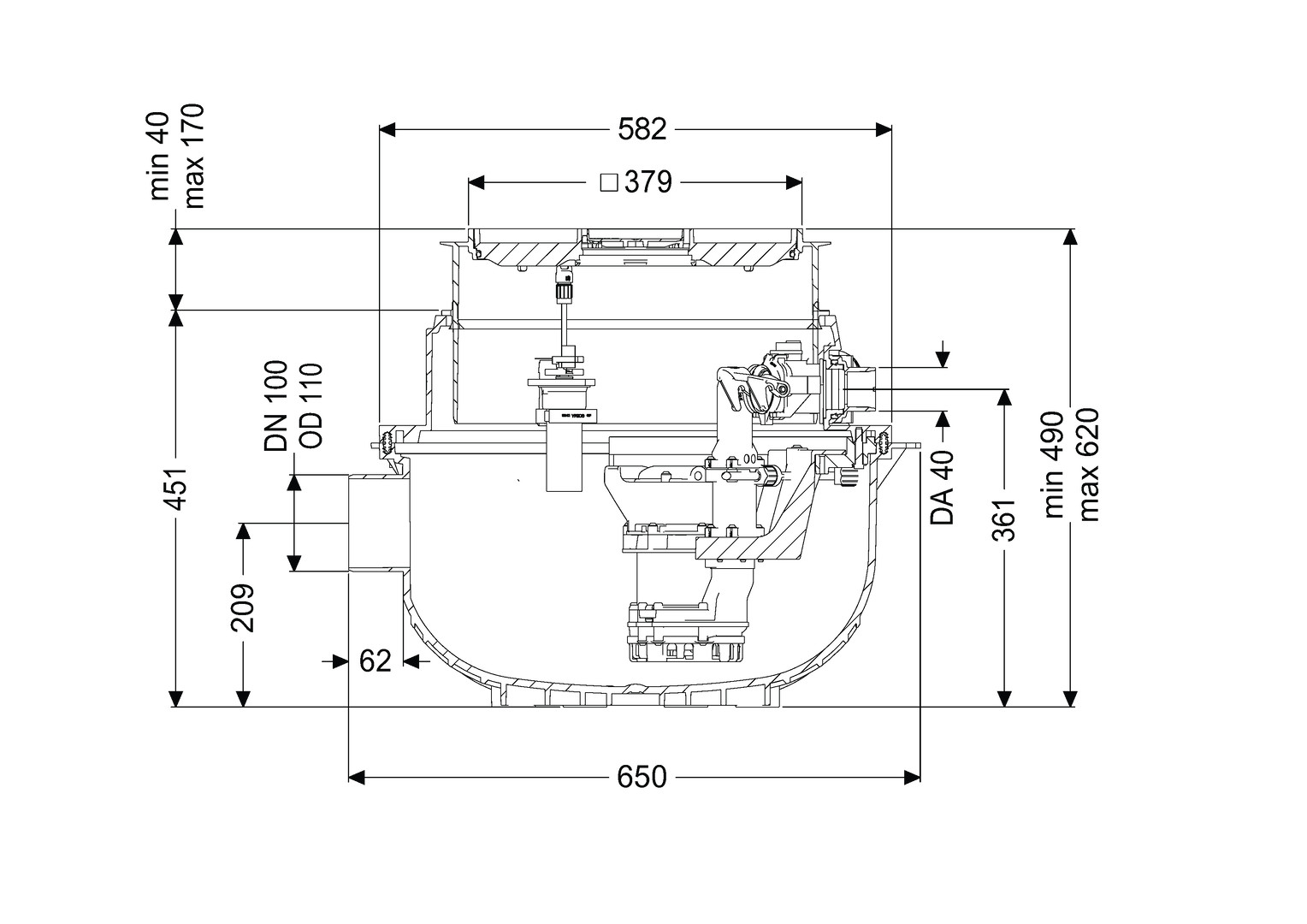 | Nenndurchmesser Anschluss Einlassseite | DN 100 |