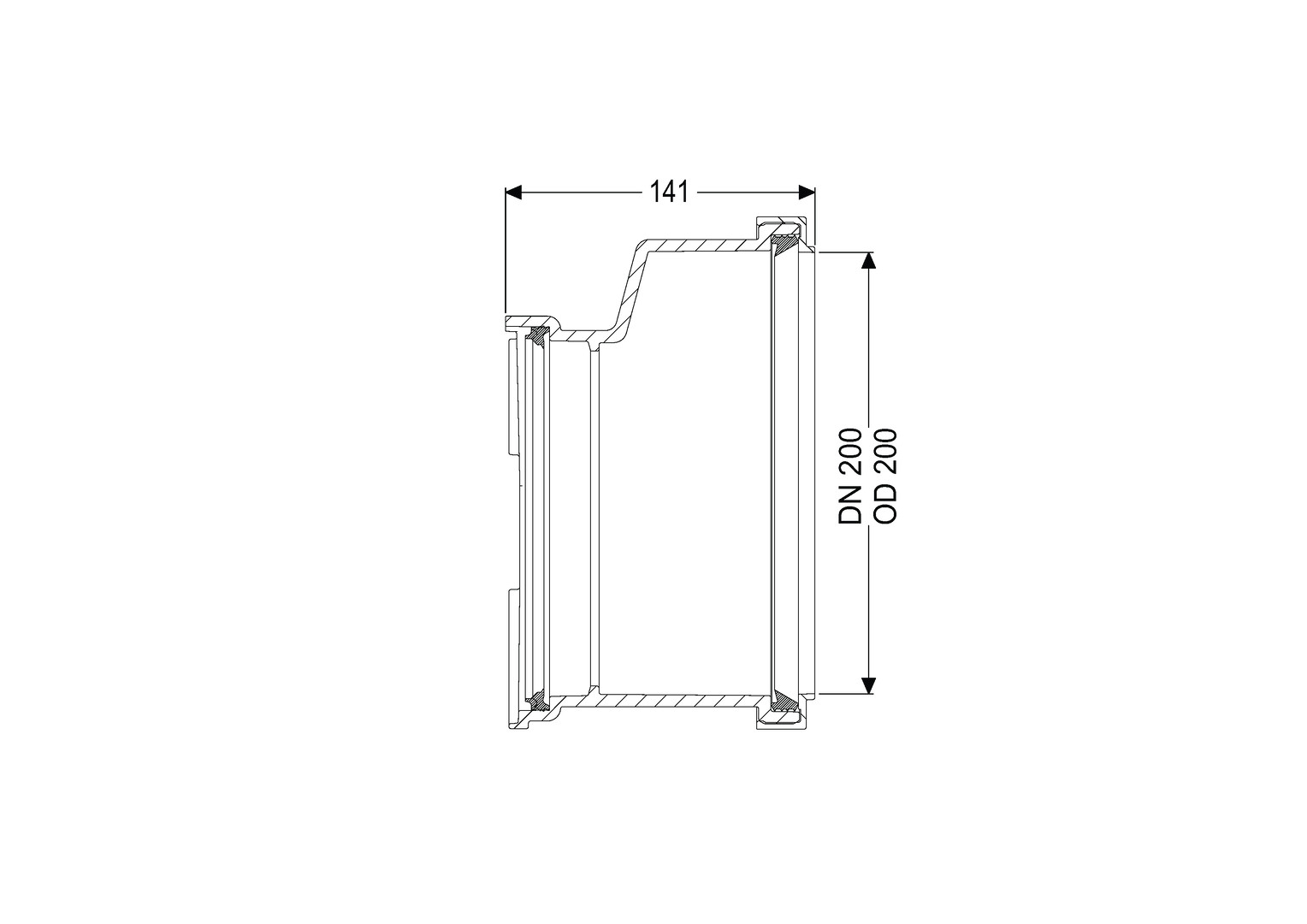 Kessel Muffe DN 200, abnehmbare Stutzen beidseitig, Kunststoff
