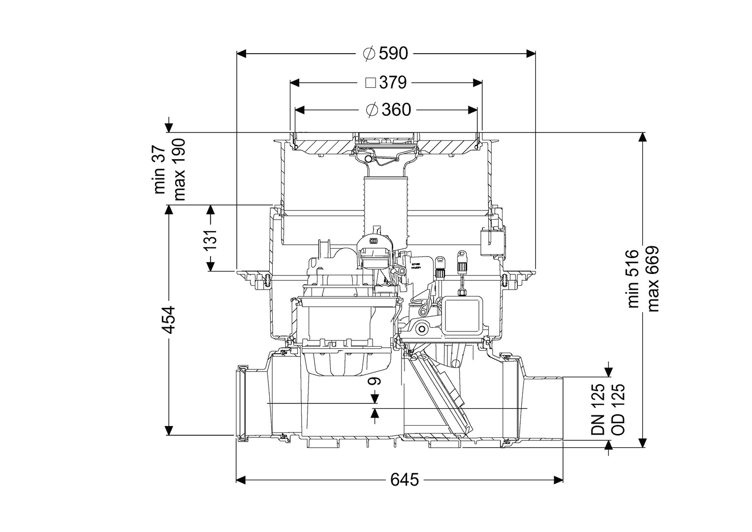 DN 125, L/H 645 x 454 mm