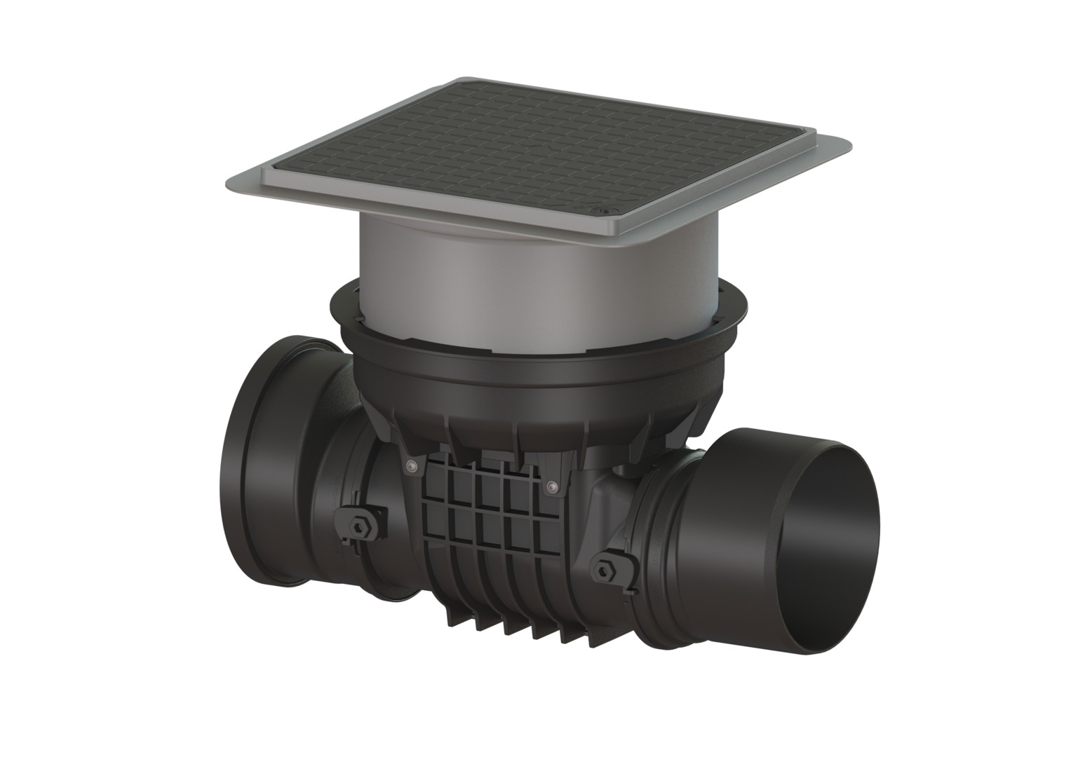Kessel Rückstauverschluss Staufix DN 200, L/H 590 x 185 mm, Abdeckung schwarz, mit Rattenschutz, Kunststoff