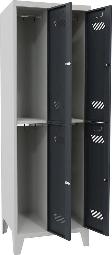 Kleiderschließfachschr. 2 Fächer 2 Abteile 300mm auf Füßen RAL 7035/7016 B600xT500xH1850mm