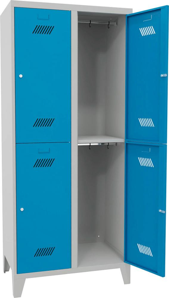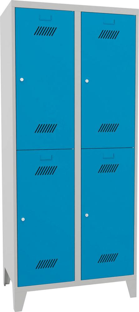 Kleiderschließfachschr. 2 Fächer 2 Abteile 400mm auf Füßen RAL 7035/5012 B800xT500xH1850mm