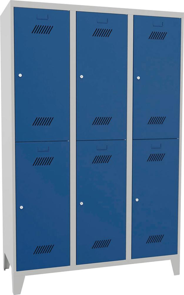 Kleiderschließfachschr. 2 Fächer 3 Abteile 400mm auf Füßen RAL 7035/5010 B1200xT500xH1850mm