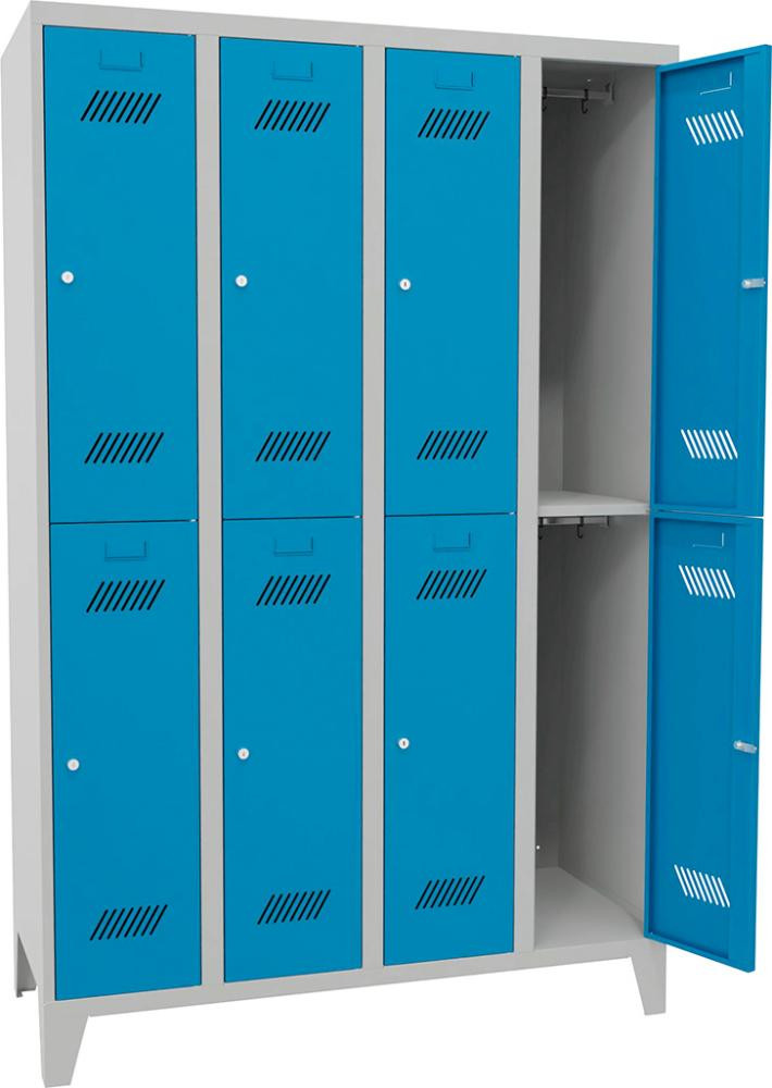 Kleiderschließfachschr. 2 Fächer 4 Abteile 300mm auf Füßen RAL 7035/5012 B1200xT500xH1850mm