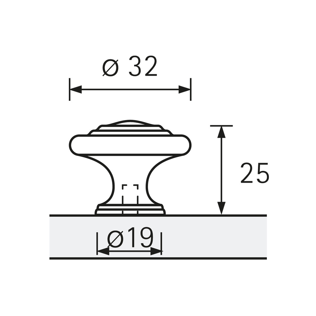 Knopf Essa, H 25 mm, ø 32 mm, Messing Optik antik