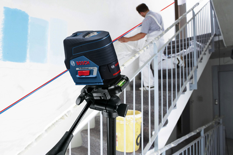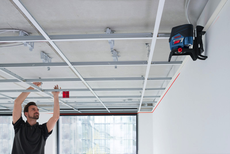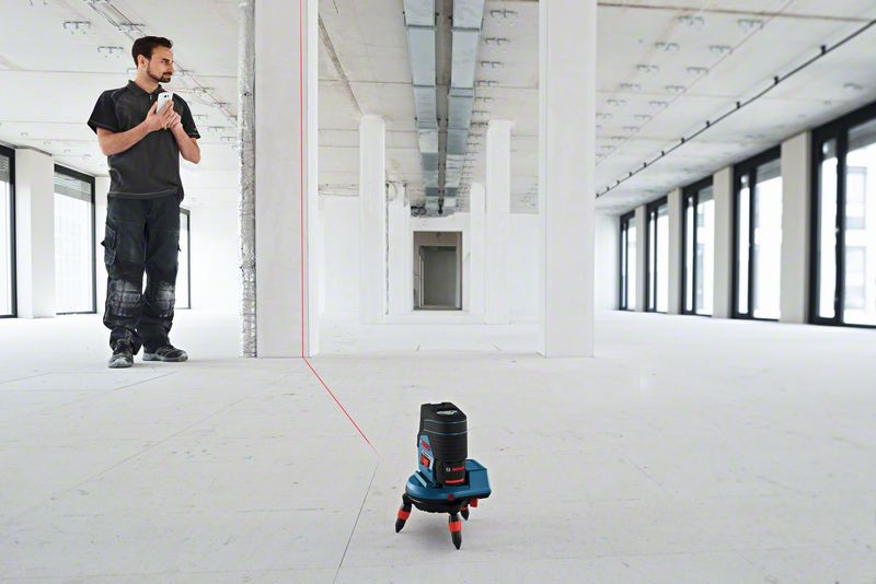 Kombilaser GCL 2-50 C, Der Kombilaser GCL 2-50 C Professional bietet für maximale Effizienz zahlreiche intelligente Funktionen. Über eine Bluetooth®-Verbindung ist ein Ausrichten des Werkzeugs per Fernsteuerung über eine Smartphone-App möglich, während dank Dual Power Source-Technologie der Betrieb sowohl mit 12-V-Li-Ion-Akku als auch mit Standard-Alkalinebatterien durchgeführt werden kann. Für die präzise Positionierung um die zentrierten Lotpunkte herum bietet die optionale RM 3 Professional eine motorgetriebene Steuerung, während mit der RM 2 Professional manuelle Anpassungen vorgenommen werden können. Das Gerät ist für horizontales und vertikales Ausrichten mit einem langen Überschwingen von fast 360° konzipiert und eignet sich für Projekte wie Trocken- und Innenausbauarbeiten. Die horizontalen und vertikalen Laserlinien und die beiden zentrierten Lotpunkte des GCL 2-50 C Professional bieten eine optimale Sicht von bis zu 20 m Entfernung ohne Empfänger und bis zu 50 m Entfernung mit Empfänger. Deckenklemme. Laserzieltafel. L-BOXX 136 (1 600 A01 2G0). Schutztasche. Drehhalterung RM 2 Professional (0 601 092 700). 1 x Akku GBA 12V 2.0Ah (1 600 Z00 02X). Schnellladegerät GAL 12V-40 Professional (1 600 A01 9R3)